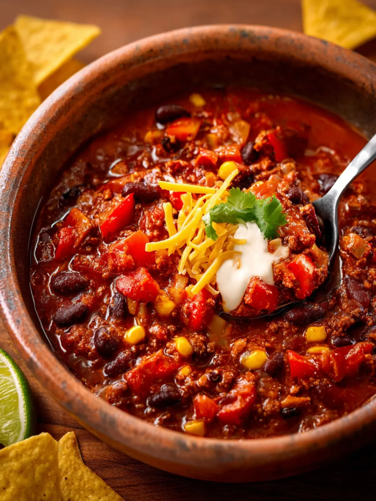 - Tortilla chips: Great for scooping or simply enjoying alongside the chili.