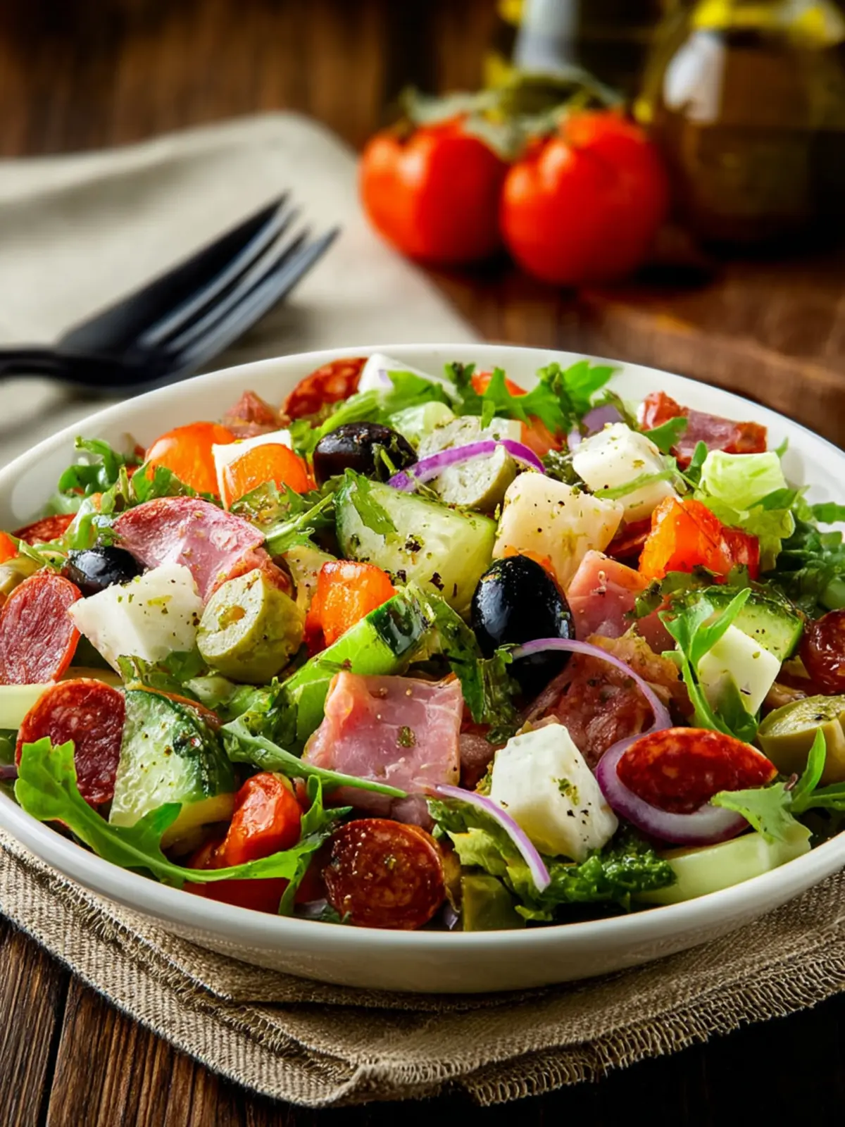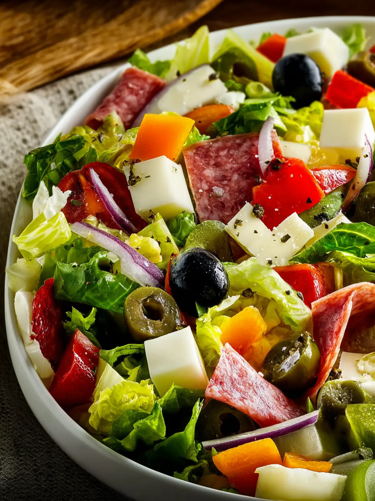 - Salami and Prosciutto: These meats add a savory richness, infusing the salad with authentic Italian flavors that transport you straight to a Mediterranean getaway.