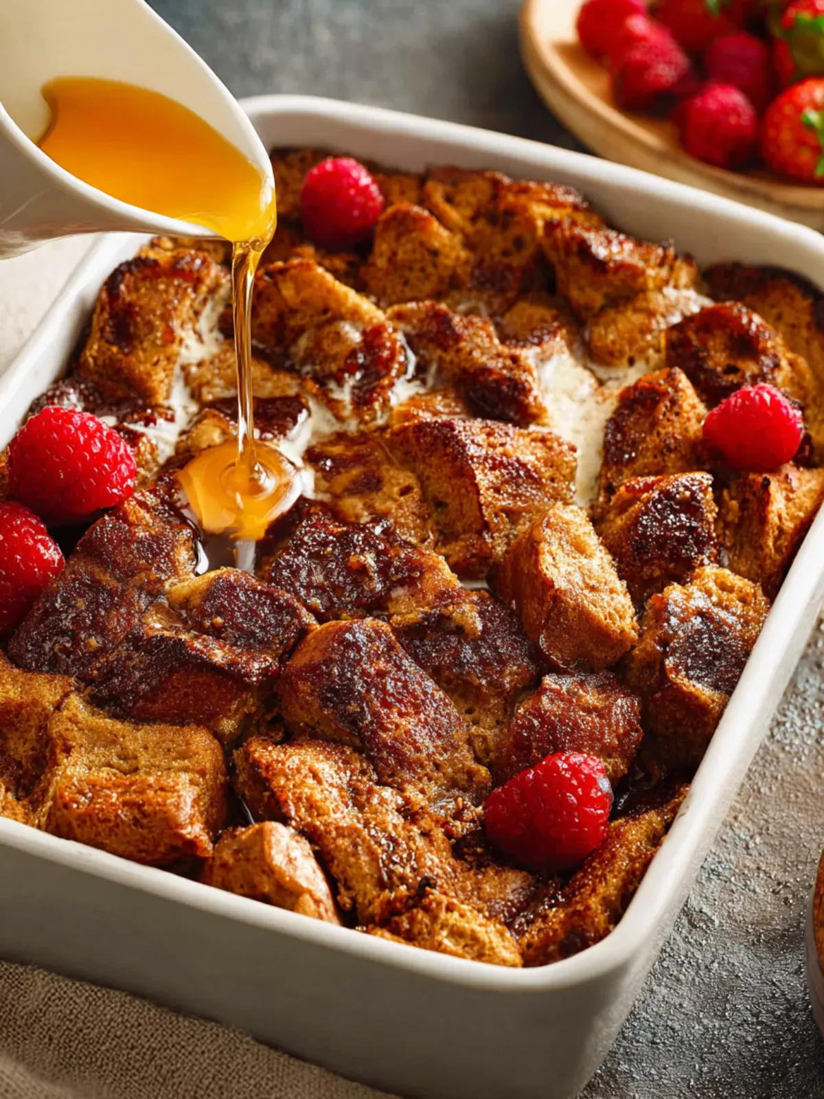 When you take that first bite, you’re greeted with a perfect mix of soft bread and creamy custard, all baked together until golden brown. It’s comfort food at its finest, rich but not overly heavy. A drizzle of maple syrup or a dusting of powdered sugar can elevate the flavors even further.