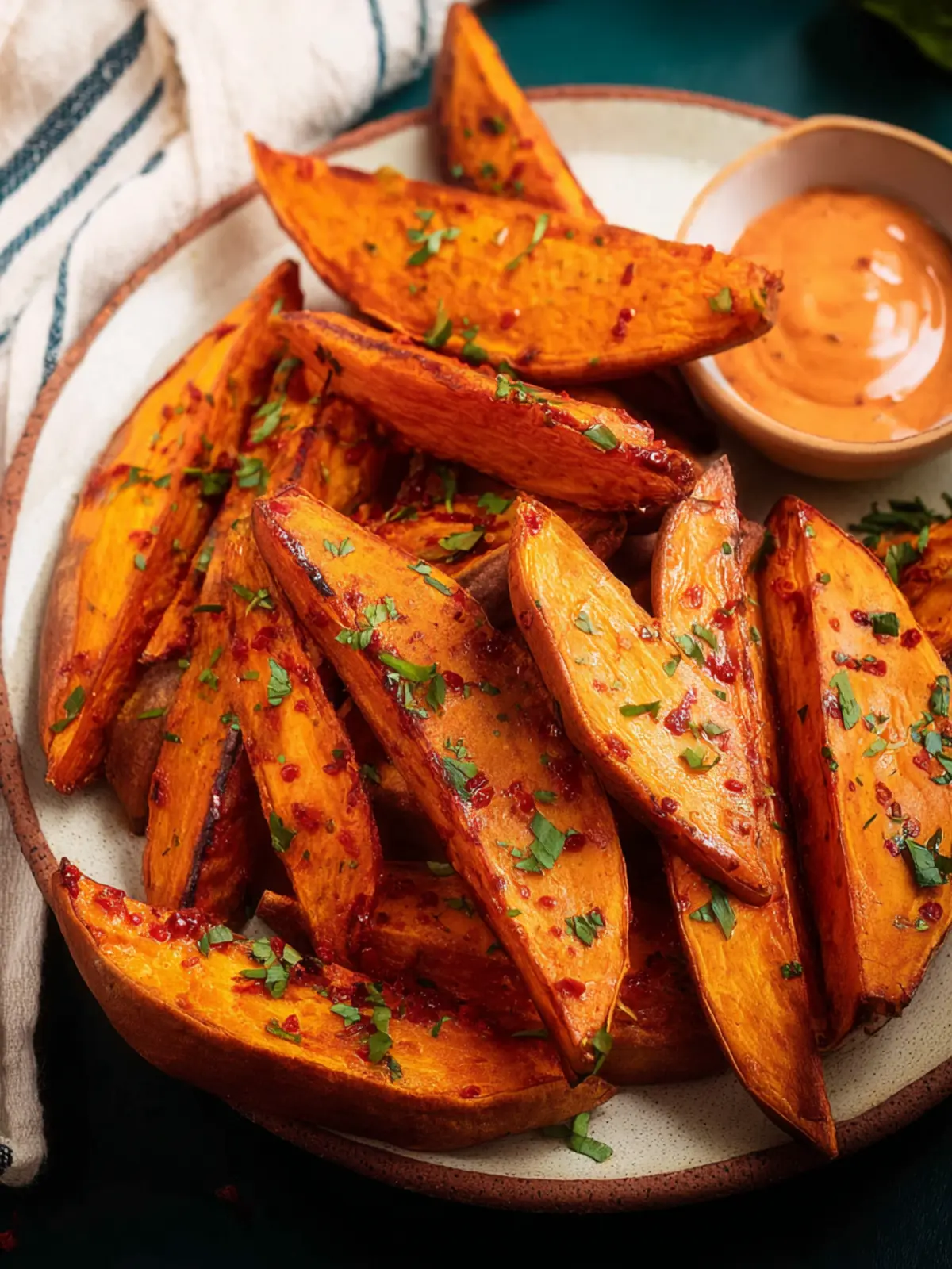 Harissa: This North African chili paste is the star of the show, offering depth of flavor and a delightful spiciness that transforms ordinary sweet potato wedges into something extraordinary.