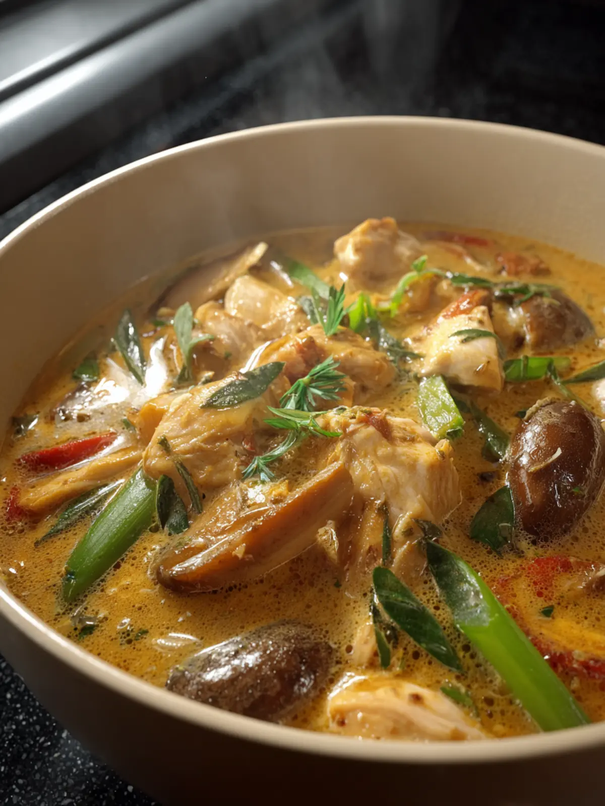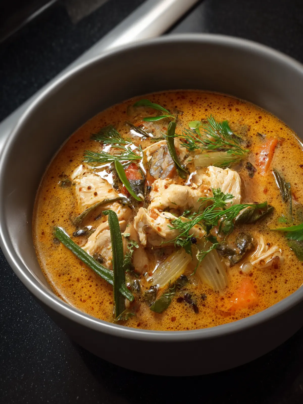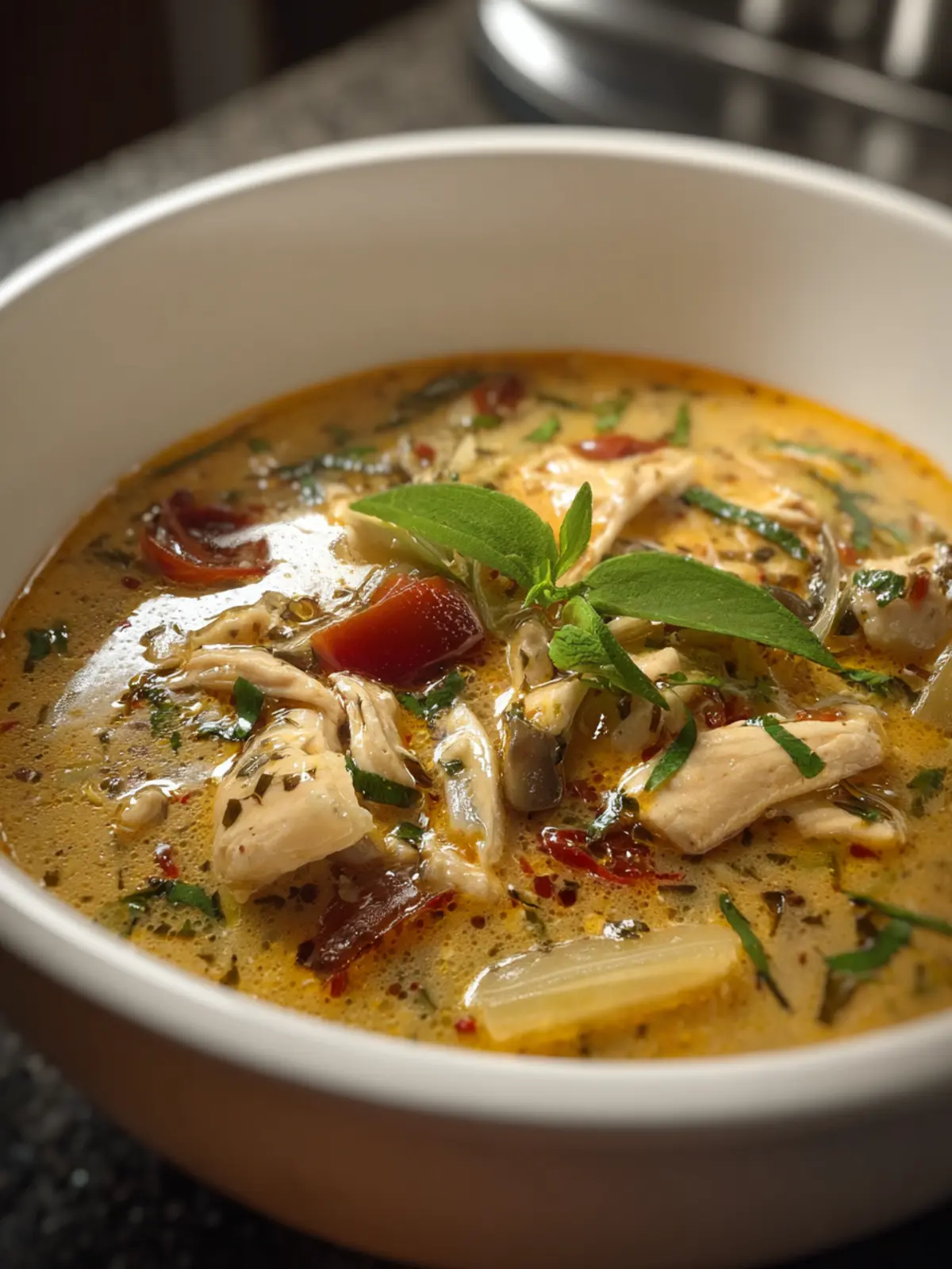 A delicious and creamy chicken soup loaded with vegetables and spices.