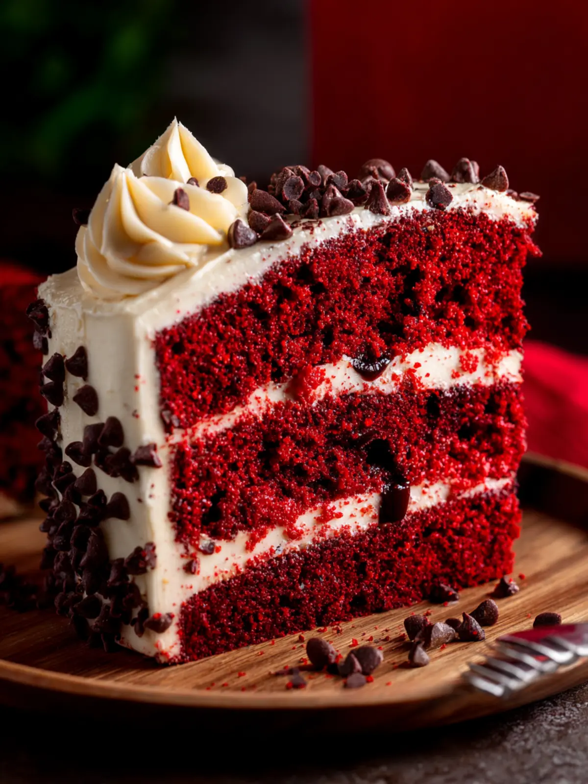 Imagine indulging in a slice of red velvet chocolate chip cake—each bite a delicious dance of flavors and textures. The vivid red hue, rich chocolate notes, and a slight tang from cream cheese frosting make this cake nothing short of legendary. Whether you’re hosting a cozy gathering or treating yourself after a long day, this cake is sure to impress.