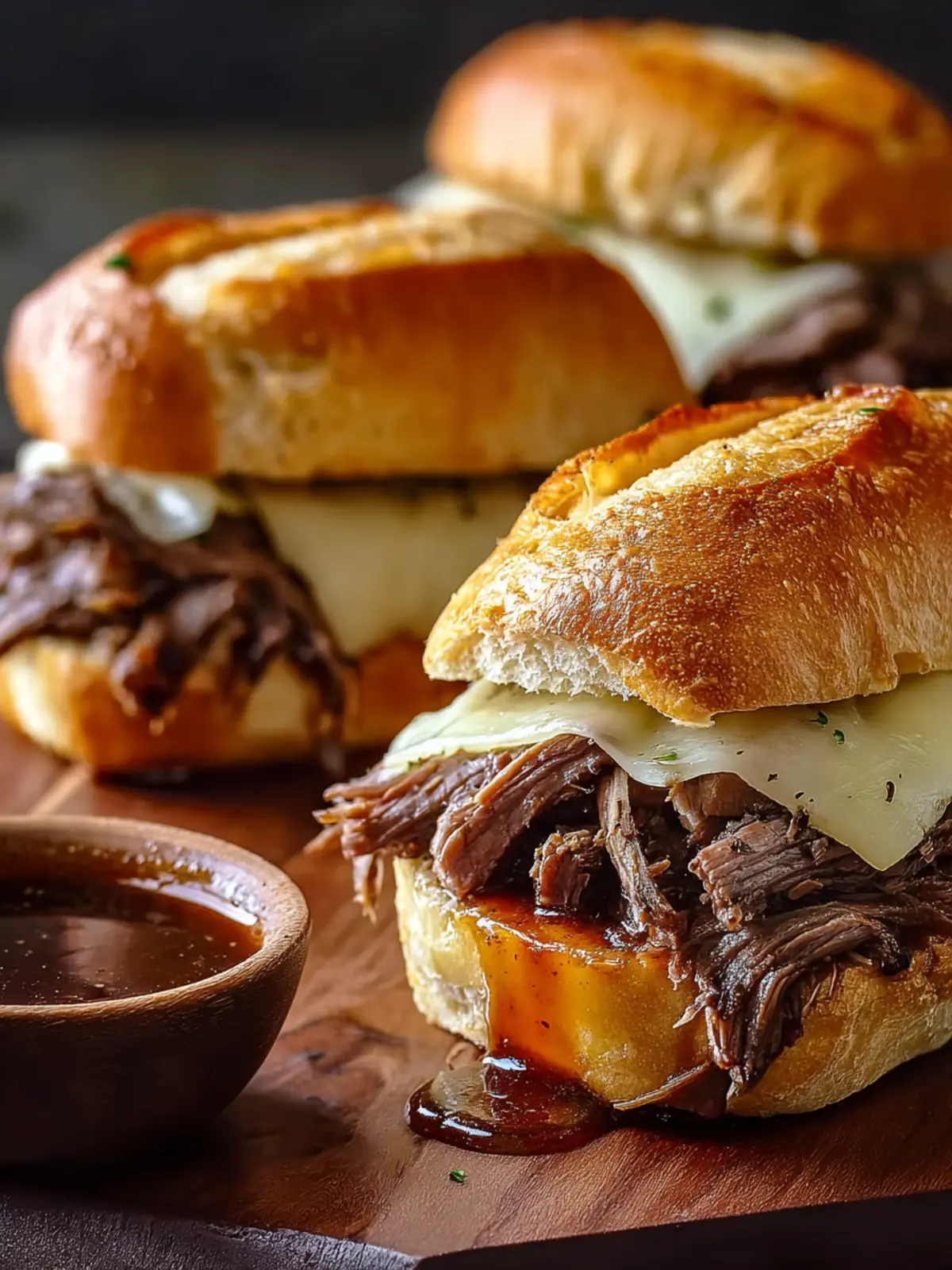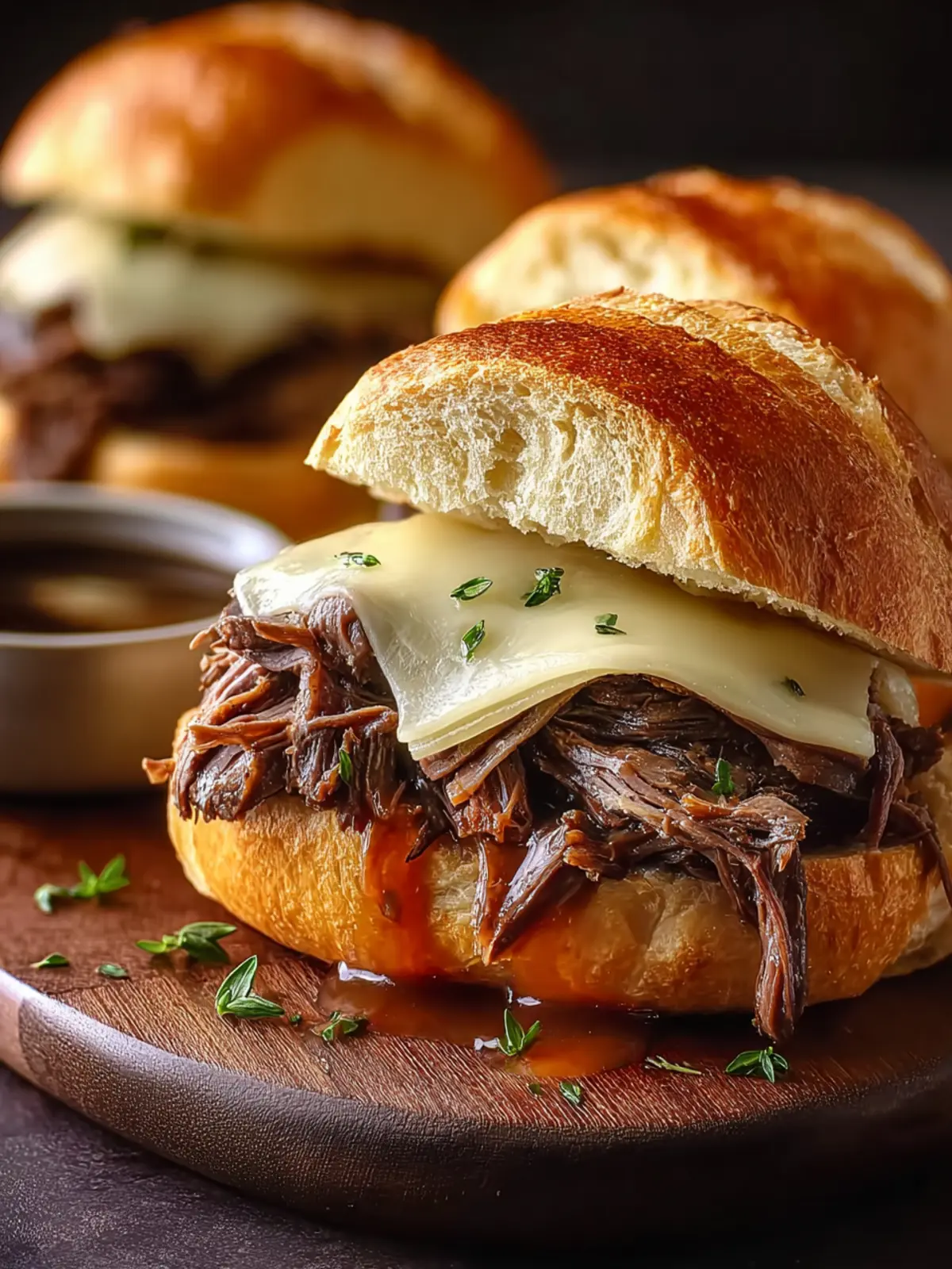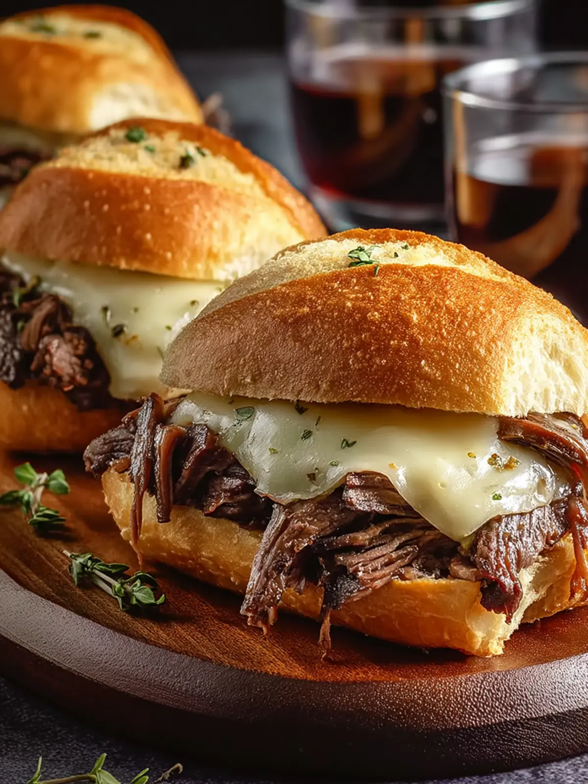 - Serve hot with bowls of au jus for dipping and optional toppings like horseradish sauce, pickled peppers, caramelized onions, or fresh herbs.