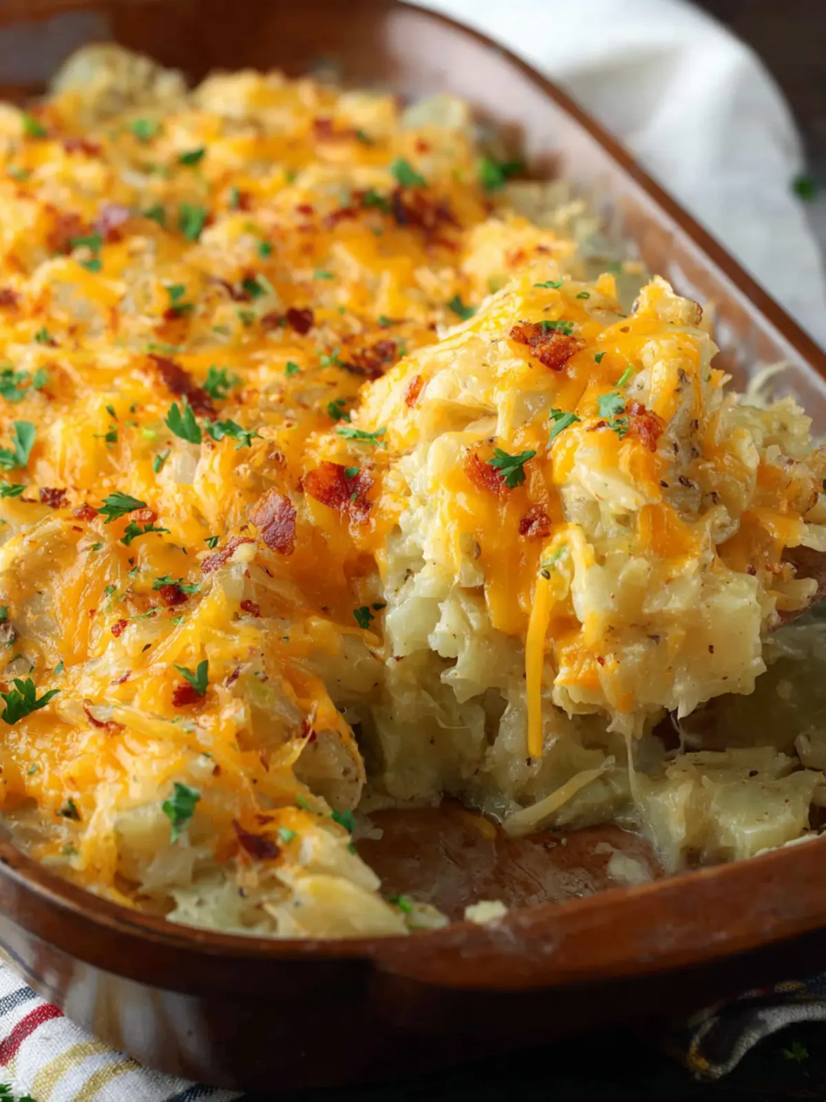 This cheesy potato casserole is a comforting dish perfect for gatherings and family dinners.