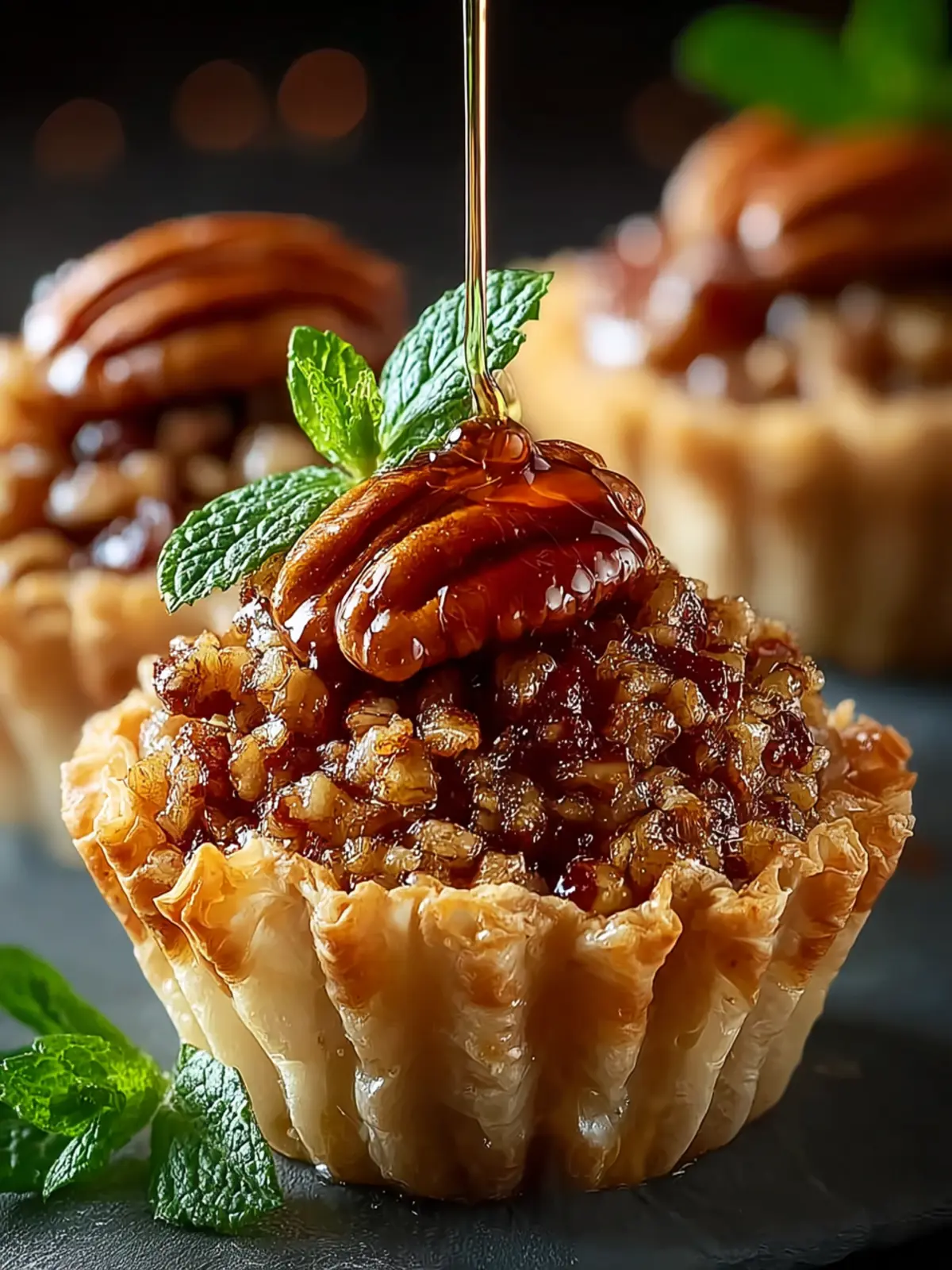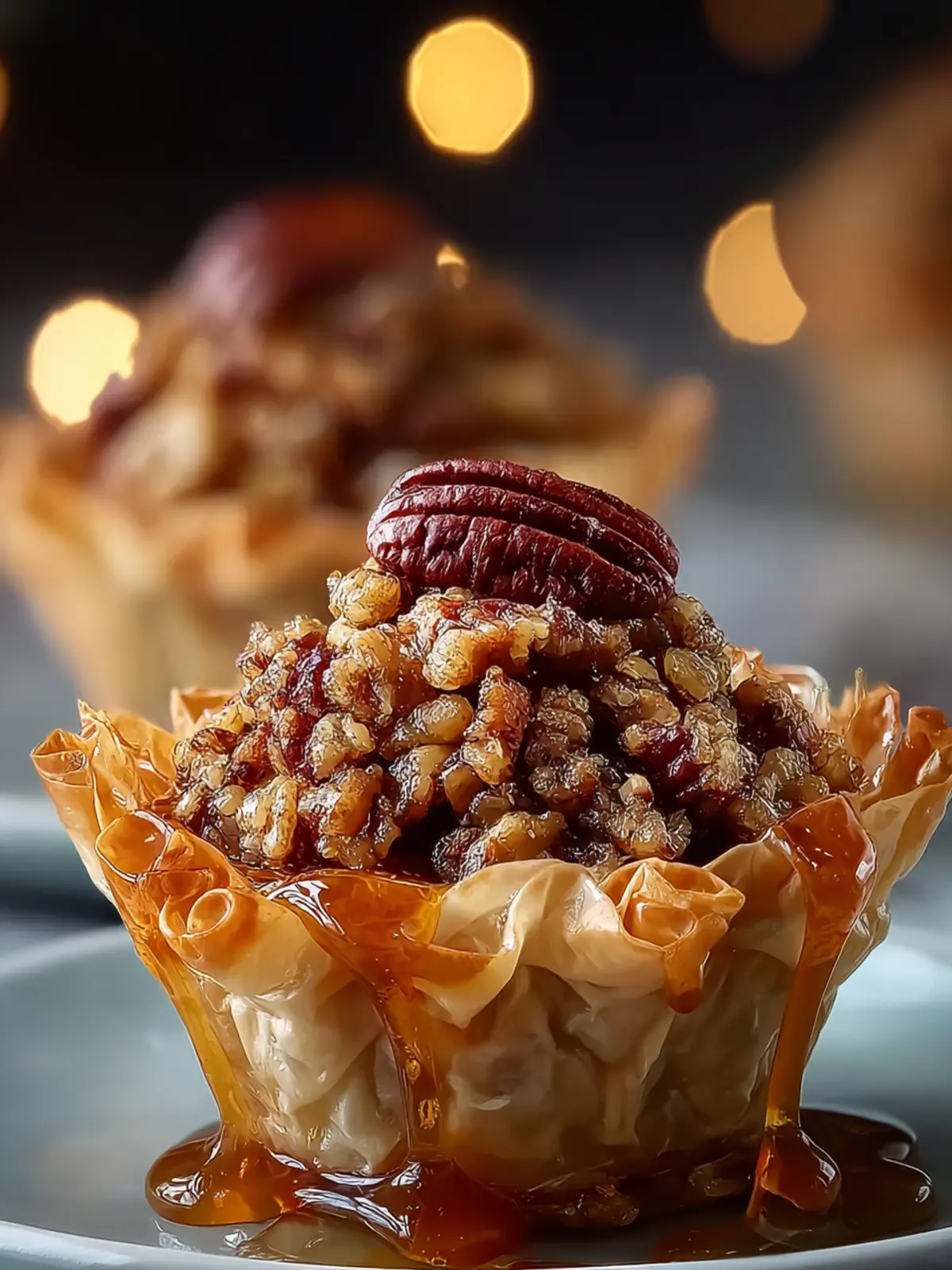 - Each bite bursts with a perfect balance of sweetness, crunchy nuttiness, and a touch of caramel richness. The crunchy pecans are the stars, delivering a delightful crunch that pairs beautifully with the flaky layers of phyllo dough.